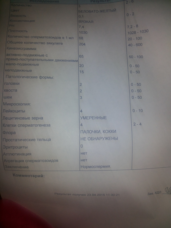 Хорошая спермограмма. Единственное , чего не знаю , нормально ли что флора -палочковая, кокки. Может кто из девочек , кто знает -подскажут. В нашей лаборатории нет такого пункта в сг.