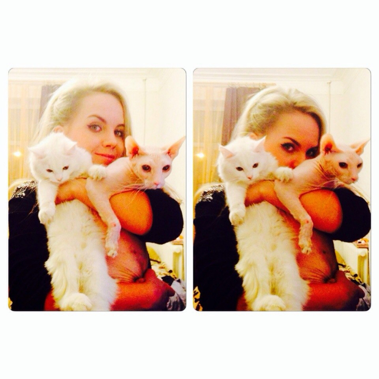 А это наши любимые белые девочки - Варечка и Алиса ))) Варя - сфинкс - живёт у нас уже 5-ый год, а Алису - пушистую ангорку - взяли только осенью ))))