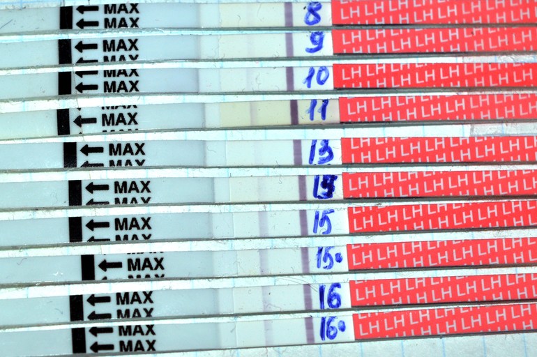 на узи была на 12 ДЦ врач 3 дня максимум дала на лопание фолликула. Поверьте я этот момент никогда не пропущу, уж очень я чувствую. И вот такие тесты)) самый яркий был на 15 ДЦ в 17.30 часов, в 15.00 еще бледный совсем был. на 16 Дц в 9.30 лопнул фолликул, тест уже был бледнее, вечером еще бледнее. Все теперь ждем 2 недельки))) и надеюсь увидеть такие же полосочки, но только уже на другом тесте)так что вот так многие девочки ждут супер ярких на них и пропускают О. Нужно еще что то если вы хотите отследить О, график БТ или Узи. Я график веду и за собой наблюдаю, очень многое в организме говорит о приближении О.Конечно сама еще не очень разбираюсь,но поняла что одним тестам верить нельзя