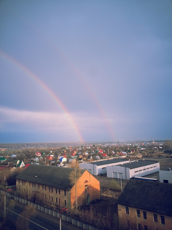 Еще в выходные над домом аист кружил.И три радуги которые я видела в этом году двойные
