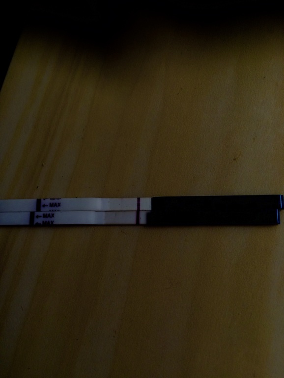 Полоски есть,на двух.Ивообще- много пописали и он менее яркий,на тест могло попасть меньше реактива(т.е. Брак)))не накручивайте)ярчайте на здоровье)))