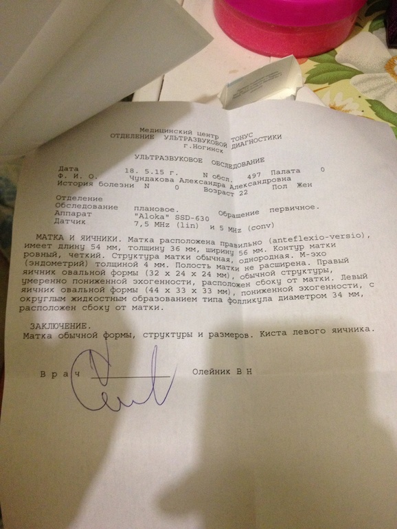 У меня аж 2 месяца киста держалась. Около 4 см была диаметром. Знаю такое дерьмо :( да с месячными выходит. У меня была функциональная киста, у тебя по видимому из за гормонов. Да и к тому же у тебя сколько уже циклов не получается. :( мне кажется сто и эндометрий тоже немного тонкий для фазы цикла. Скорее проблема не только в том что овуляция не получается но и в том что эндометрий не благополучный доя имплантации. Очень тонкий.... Возможно у тебя киста еще в прошлом цикле образовалась и не узла с месячнысии от того и эндометрий не нарос в этом цикле. В любом случае тебе необходим хороший репродуктолог. И конечно, всегда держу за тебя кулачки и наблюдаю за твоими новостями ;)