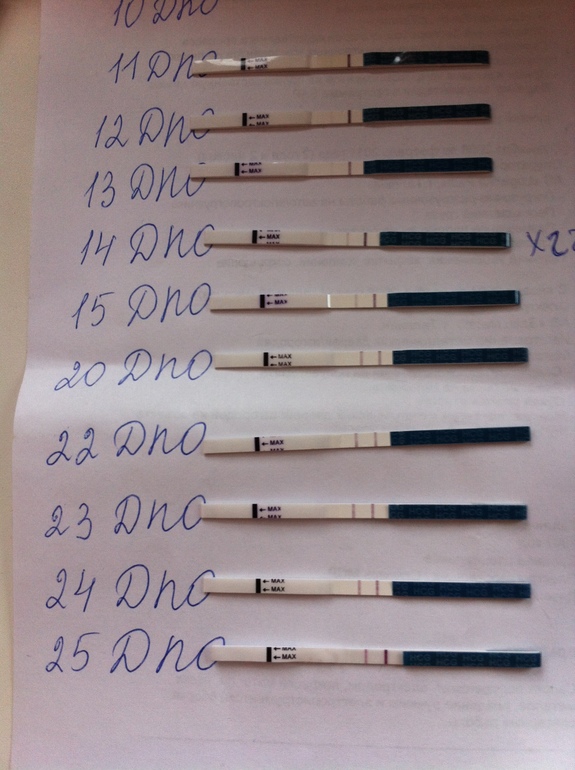Вот динамика тестов ,уже высохших , на 14 ДПО хгч 37, на 16 ДПО 75, больше не сдавала.