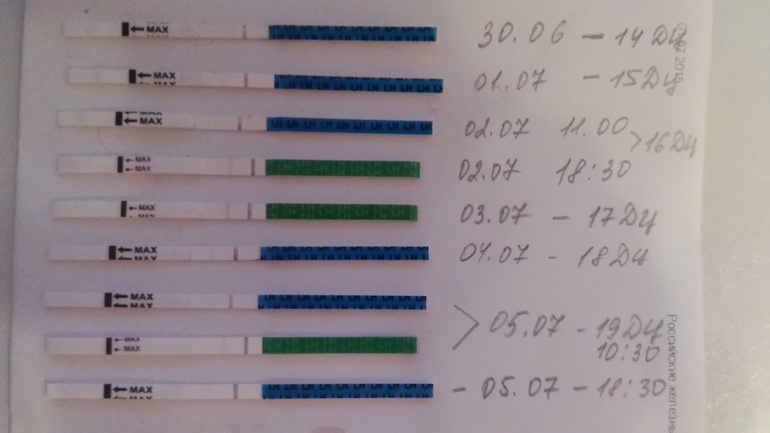 Девочки, разбирающиеся в этом, помогите. Цикл нерегулярный, в среднем 32-35 дней. В прошлом цикле был сбой 40 дней длился. Пытаюсь поймать овулю, а её всё нет. Я уже на нервах. Может вообще уже и не ждать ((. Сейчас добавлю фото. И может ли быть, что сегодня полосочки почти не видно, а завтра ярко будет. Смотрела чужие тесты, показалось, что всё же у девочек есть динамика.