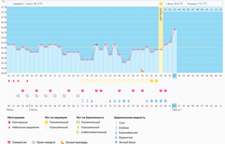 Часто в кооментах уже приводила свой нестандартный пример более менее стабильного цикла в 33 дня с овуляцией на 34-35))) Вот график, на 20 ДЦ пришлось выставить "не учитывать", а то ставит О на 19-й день хоть тресни