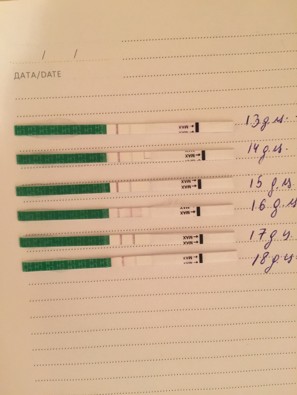 Овуляция( тесты на овуляцию)Девочки, первый раз делала тесты. Самый яркий на 17 дц, значит овуля на 18-ый день? Помотрите пож-та фото под катом