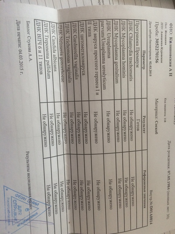 Где не обнаружено ничего это понятно а вот мазок на флору...Александра
