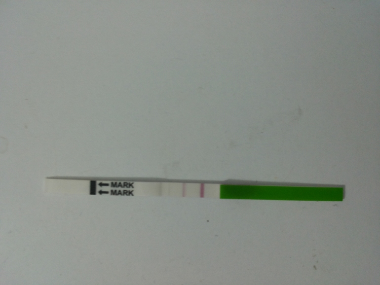 Отрицательный да? На нем написано что полоска должна быть либо как контрольная. либо ярче. если бледная то отрицательный. Но я бы не сказала что она прям бледная, почти как контрольная. Когда ждать О? Когда сделать еще один тест?