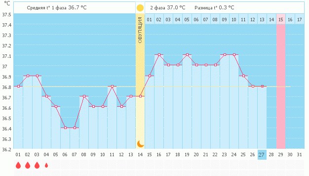 Делала узи один раз на 11 д.ц. - фолликул 22 мм. Вот график месяца, когда делалось узи: