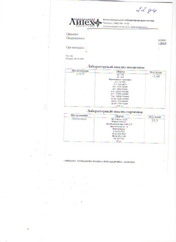 АнализыВсем привет.Прининимаю утрожестан 3 месяца уже. понимаю что завышешенный результат из за утрика, но и хгч меньше 1 -это пролет да?Вообще на 22 дц хгч показывает положительный результат или рано еще, может не показать?
