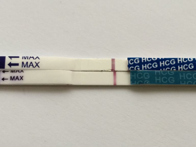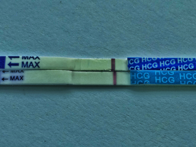 Завтра день Х, сегодня сделала тест Эви (нижний) и вчера вечером ФРАУ (верхний). На обоих может что-то и есть, но все больше похоже на реагент. Живот болит прям как перед М всегда… Правда только грудь внушает в меня надежду… Она всегда болит либо сразу после О либо за неделю до М, но всегда перед М за 1-2 дня умолкает (!!) и вступает в полную мощь живот с болями. А у Вас как ведет себя грудь перед М? А тут грудь вчера болела, сегодня прям горячая и чешется оба соска (простите). Конечно же я понимаю, что это может быть просто сбой или гормоны… Во общем, я устала