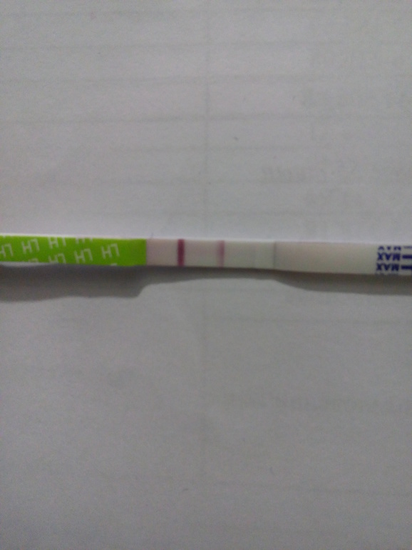 И я думаю, что это вовсе не реагент. Реагент серый, а здесь четко видно что оттенок красный. Переделайте через пару дней другим тестом. Все должно проясниться. Удачи вам))
