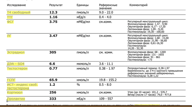 ЭммаМама в Зачатие 10 лет Сегодня сдала часть анализа на гормоны, что скажете? Анализы Привет, девочки! Была сегодня в Инвитро, сдавала кровь на женские гормоны. Кто в этом разбирается? Насколько я поняла, то всё в абсолютной норме? Что скажете? Сегодня 7д.ц., сдавала в 10 утра) Посмотрите еще 20 записей на эту тему Отменить Ответить Олеся (Лесёнок) Соотношение ФСГ и ЛГ один к одному, не есть гуд. Пролактин в норме, но высоковат. 22.09.2015 Ответить Анализы на скрытые инфекции. вопрос про динамику хгч Чаты Беременных Выберите чат: Январята-2026 Февралята-2026 Мартята-2026 Апрелята-2026 Майчата-2026 Июнята-2026 Июлята-2026 Августята-2026