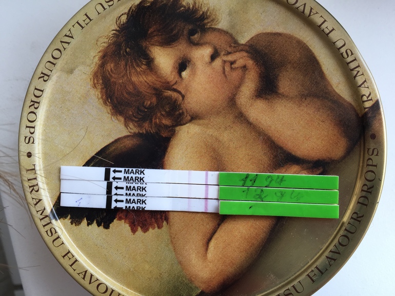 Точно такая же картина в этом цикле. Тесты такой же яркости были, потом побледнели, по узи О была и БТ ее нарисовала. Но тесты 2 фирмы разгые так и не стали положительными)
