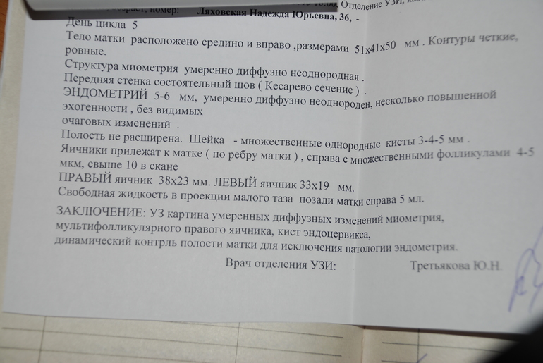 АнамнезДевочки, хочу посоветоваться. Стала планировать беременность 9 мес. назад, и пошла по врачам. Начала, естественно, с гинеколога. Отправили на УЗИ. Оказалось, что эндометрий не соответствует дню цикла, рыхлый и подозрение на полипы. УЗИ делала 2 раза в разных местах, ошибки быть не могло. Назначили на 2 мес. дюфастон. Переделала УЗИ через 2 мес. - все в норме, отправили домой со словами, приходи когда забеременеешь...Да, забыла сказать, что первое УЗИ делала на 6 день цикла, а переделывала повторно уже на 4-й. И врач-узист сказала, что возможно, в моем случае УЗИ на 6-7 день просто не информативно.... Но так уж получилось, что из-за проблем со здоровьем (другого плане, не по гинекологии) планирование пришлось отложить. Через пару месяцев снова пошла на УЗИ - картина намного лучше, чем после порвого УЗИ, но чуть хуже, чем после второго. Дню цикла соответствует почти (минимально увеличен), но рыхловатый. Врач ничего внятного не сказал, мол, может все и норм, а может и не очень. Отправил на анализы, на гормоны. В принципе все хорошо, и прогестерон высокий (даже повышенный). Врач спросил, есть ли проблемы с циклом...Да, есть: