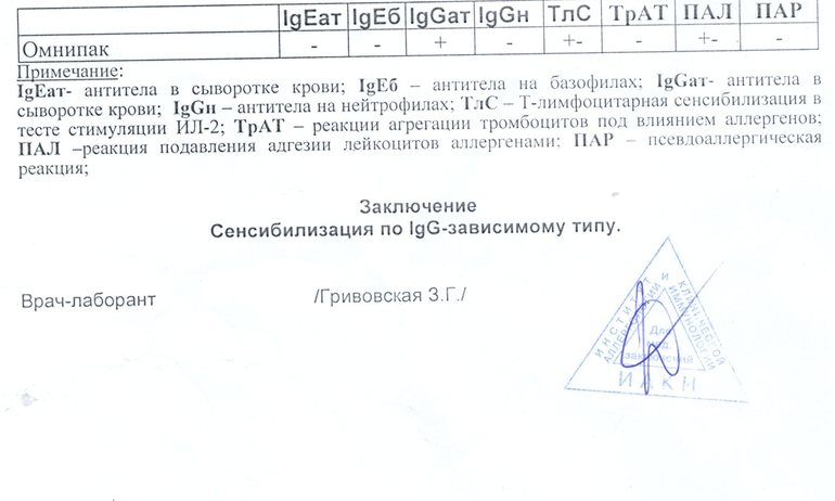 ГСГ, ЭХО, МСГ, ФертилоскопияДевочки, кто-нибудь сдавал аллергопробы на Омнипак? Это контрастное вещество (йодовое) применяемое при ГСГ. Я аллергик, поэтому решила сдать.... Может кто-нибудь подсказать по результатам? Есть ли у меня аллергия или нет? У кого были какие результаты?