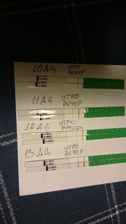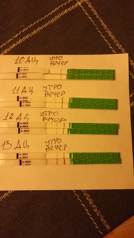 У меня регулярный цикл 28 дней, и обычно всегда на 12 ДЦ полоски одинаковые по цвету, а в этот цикл только на 13 ДЦ к вечеру сравнялись....