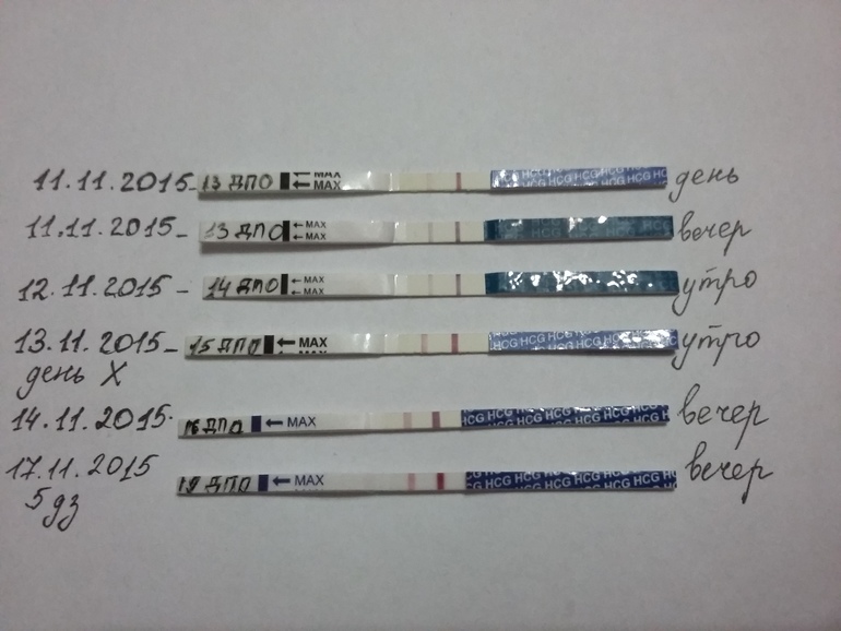 Я смотрю - это индивидуально. У некоторых прям в первый день задержки одинаково яркие полоски... От тестов наверно тоже зависит конечно) У меня последний остался, берегу пока)))