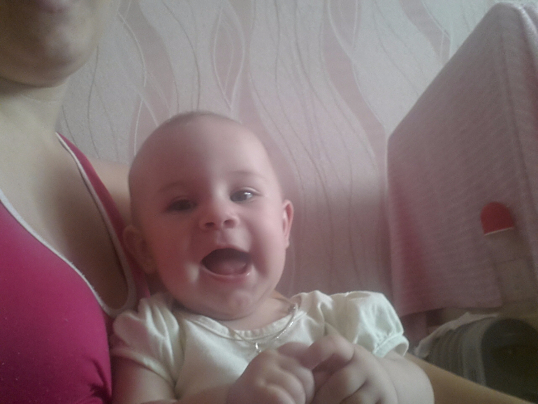 Ну а мы ростем, ходим с 9,5 месяцев, выростили 3 зуба пока, говорим папа и теть, иногда баба. Маму называет ээээ))) нну и фото)))