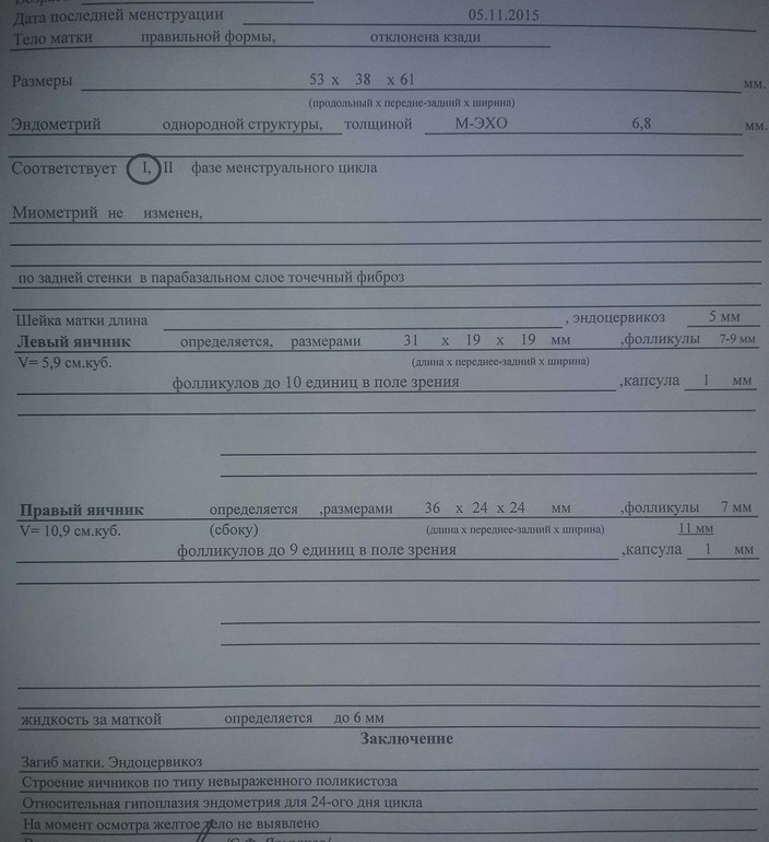 ФолликулометрияДевочки доброе утро. Планируем с июля. Цикл обычно 31 день, все 3 месяца стабильно отслеживала овулю по тестам и базальной температурой. Все хорошо, разница 0,4 градуса. Тесты полосатились на 15-17 дц. В этом месяце бросила мерить базальную( оставила только тесты), и решила попить боровую матку. По ощущениям мне понравилась она. Нормализовался сон, перестала вставать в туалет по ночам, исчезли признаки ПМС. Но подозрительно перестала болеть грудь, и тест на овулю упорно отрицательный. Решила посмотреть по узи что же там твориться.. Была на узи на 24 дц. и вот результат. Посмотрите пожалуйста кто разбирается в узи. Я так понимаю травка сбила цикл. и у меня до сих пор длится первая фаза. Можно еще надеется на позднюю овуляцию или остается только ждать месячных? Заключение и фото прилагаю.