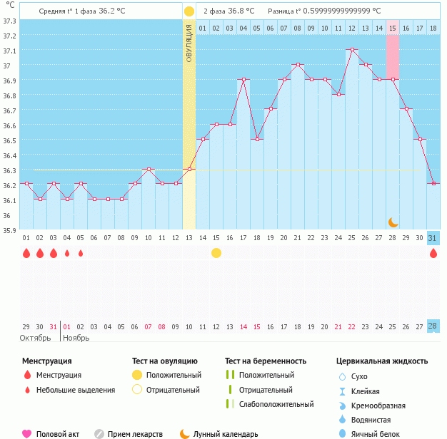 Есть среди дружащих с градусником те, кто измеряет не БТ, а температуру тела? Я тут попробовала один месяц так делать и вот что получилось. График в приложении заполнила сейчас только по записям из программки в телефоне. В графиках этих ничегошеньки не понимаю, но опытные пользователи, к вам вопрос. Этот график хоть как-то похож на график составленный по данным БТ.