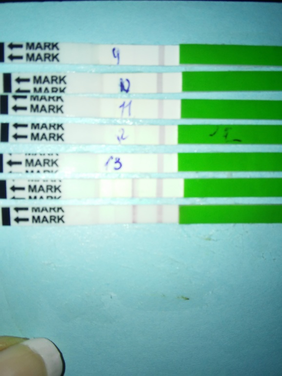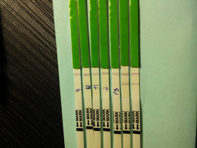 Последний не бледные,он видимо из другой партии,у него контрольная полоска отличается от контрольной предпоследнего. Любите мужа три дня почаще и будет вам счастье.