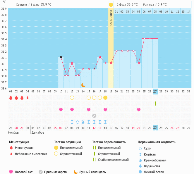 Это потому,что я меряю БТ во рту, а она там на пару десятых ниже. Имеряю электронной.термометром, а он показывает темп. также на пару градусов ещё ниже.вот и получается. Главное ведь динамика