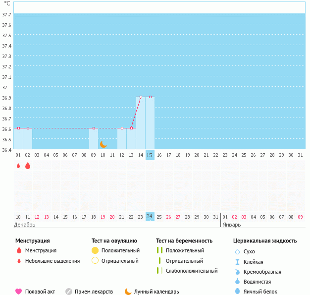Пришла вчера с УЗИ..разбитая...сижу на работе как овощ....фигня полная...фолик так и остался 25мм...сказали на нем кровопоттеки.....может ЯК вышла а может и нет..Но сам факт..Прогестерона уже начал выделятся т к БТ 36,9..и базальный слой эндометрий уже перестраивается во вторую фазу..ну как это...вобще такое бывает..фоликул не лопнул..а прогестерон вырабатывается уже..Колола Овариум(что бы ЯК была более качественной)...но теперь фигня с Овуляцией...ну что со мной происходит вобще не понимаю...Надеялась что под Н Г тесты заполосатятся..а теперь...Может у когото было такое же странное узи..и цикл?И вот посмотрите график..Как тогда можно верить БТ..не понимаю...