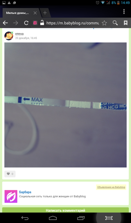 Да я уже устала видеть каждый месяц одно и тоже...не может столько быть прерываний...хотите увидеть,купите фрау или струйный клеаблу,можно и дешёвый за 20 р который,дальше все как по инструкции,выжидаете час,и аккуратненько под лампой со всех ракурсов)и видите реагент:-)