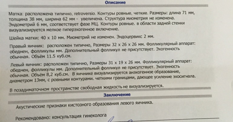 Какое-то странное УЗИ, на мой взгляд.... типичное положение матки это anteversio, если retroversio, значит не типичное...что за мелкое гиперэхогенное включение по задней стенке? Почему фолликулярный аппарат обеденный, как это видно? Как может анэхогенное образование давать усиление эхо сигнала?