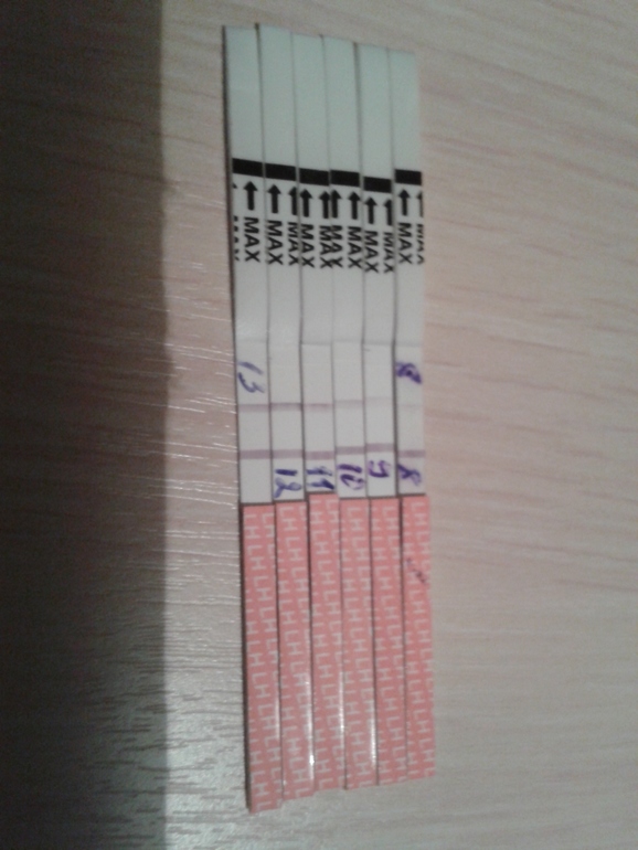 Овуляция( тесты на овуляцию)Девочки, подскажите пожалуйста, когда все же о была? По своим ощущением я вот думаю, на 11-12дц тк ля очень тянул. А на тестах три дня полосотятся.