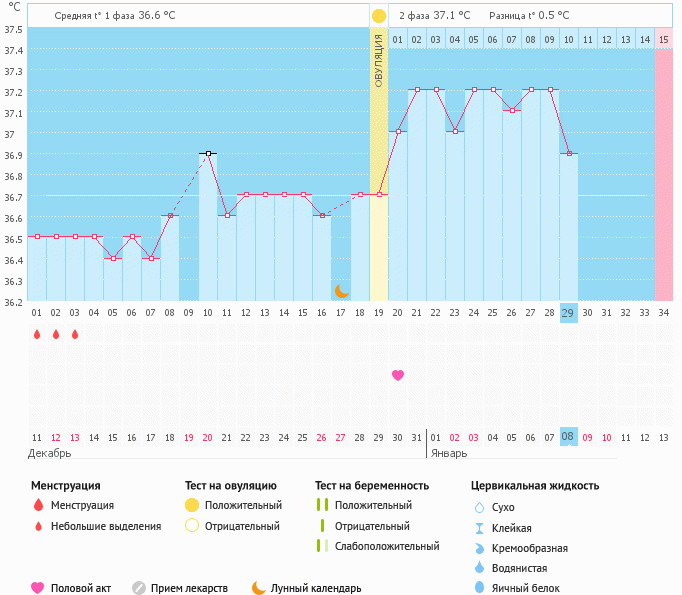 Базальная температура, ТТ, графики БТДевочки, нужна помощь! Ситуация такая, у меня спкя, овуляции бывают, но не всегда, полгода была на утрожестане с 16-25 дц, потом решила отдохнуть от планирования, бросила пить гормоны и решила наконец то последить за бт, какого же было моё удивление, когда стал получаться такой график, что для меня странно, так как, даже когда были овуляции ранее, всегда был очень низкий прогик, ставили недостаточность лютеиновой фазы, а тут насколько я разбираюсь, вроде нормальная разница температур. Но походу рано радовалась, так как начались какие то розовые выделения, походу начинаются((( хотя как то странно, живот вообще не болит, раньше адские боли были! Так вот почему при таком вроде бы неплохом графике менструация раньше началась?!