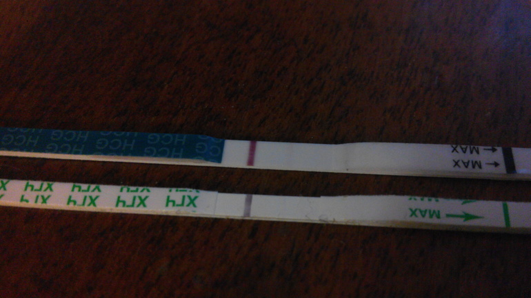 Оба теста на утреннюю мочу. Нижний - вчера, верхний - сегодня.