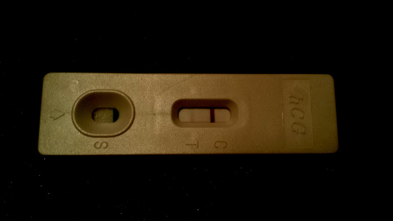 Затемнила в фотошопе... Тест "Фраутест", чувствительность 15 мМе/мл, пробовала несколько раз, реагентов не давал, у меня все тесты были кристально чистые.