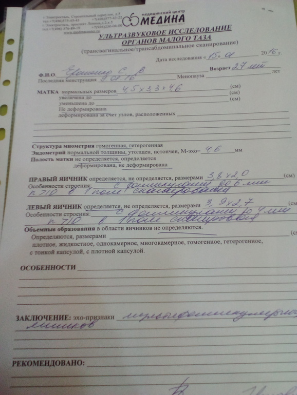 Напомню сдавала гормоны тестостерон и 17-он шкалят, соответственно ановуляция. Вот узи с 7 дц.