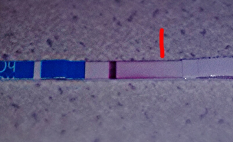 На первом фото ничего не вижу, на втором виднеется. Но еще только 9 дпо, повторите позже. Удачи