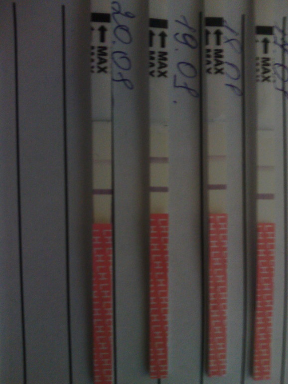 мое мнение такое: 19 был положительный тест на овуляцию, т.е. сама овуляция была 20 числа. т.к. всплеск гормона, который показывает О обычно проявляется за сутки до нее(О). и если мне не изменяет память в инструкции об этом пишут, удачи!!! а вы когда "старались"?