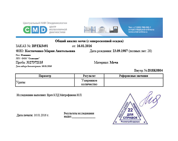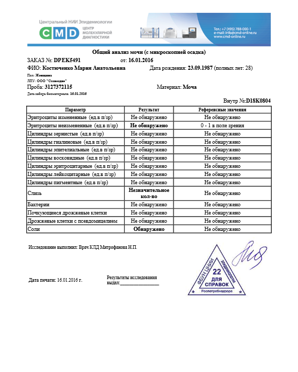Я еще 28 декабря записалась на прием на 15 января, по этому спокойно ждала приема, чтобы поведать о "воспалении" врачу. До тех пор у меня просто отваливалась поясница, побаливало периодами то справа то слева (в основном справа) и медленно но верно поднялась температура до 37,1 (и конечно, это совпадает с моей БТ после О). В общем настало 15 января (тогда уже 5 дпо). Прихожу, рассказываю свои подозрения на воспаление, отвечаю на встречные вопросы, прохожу осмотр, где осознаю что нифига не болит при пальпации, только когда она пальцем надавливала изнутри в сторону правого яичника были неприятные ощущения. Она сказала что да, видимо небольшое воспаление... и назначает мне антибиотики на 7 дней - доксициклин. Так же Дозалик (от которого я ощущала себя как овощ) и ректальные свечи для снятия боли. Итак началось лечение... На сл день сдаю мочу, общий анализ крови и кровь на белок. Вот анализы:
