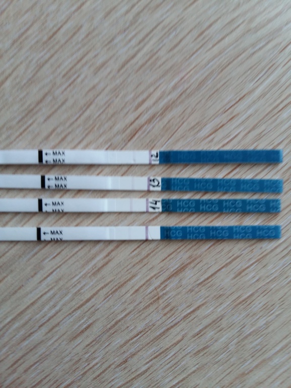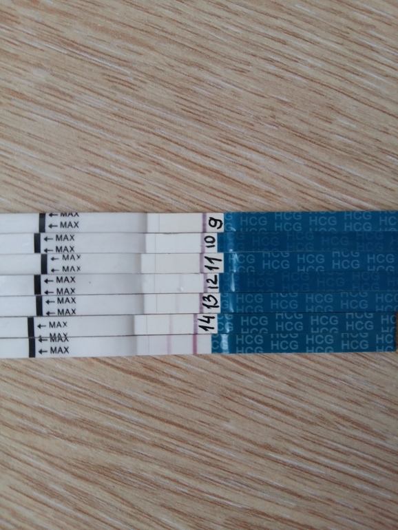 13-14 дпо тоже были с небольшой динамикой и я с нетерпением ждала сегодняшний день Х! Тестилась я исключительно эвиками в розовой упаковке, тк слышала что они более чувствительные. Вчера вечером пошла в аптеку и взяла эви в голубой упаковке и один в розовой. думаю ладно..какая разница уже, на таком дпо должен нормально показать. Взяла. Утром, на утреннюю мочу делаю.. и... трясусь от страха, понимаю что полоска бледная, как три дня назад!