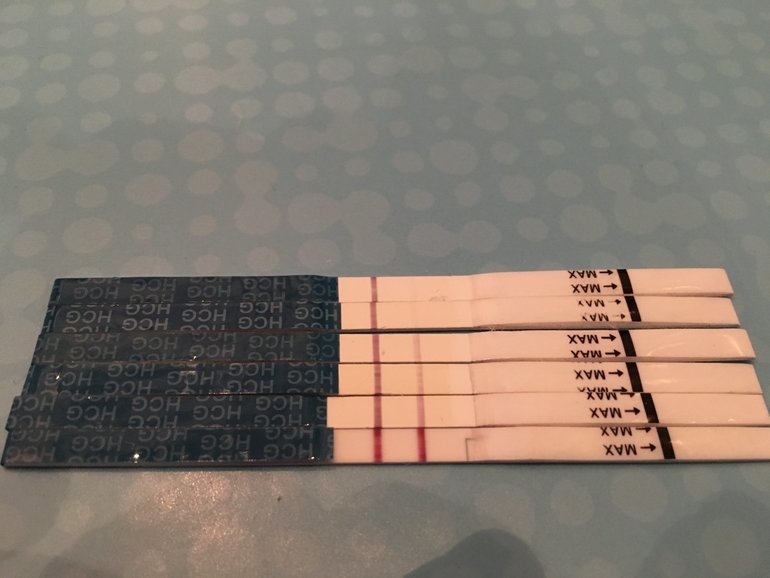 Вот мои тестики. Первый был сделан примерно на 10-11 ДПО, предпоследний день Х и последний 3й день задержки.
