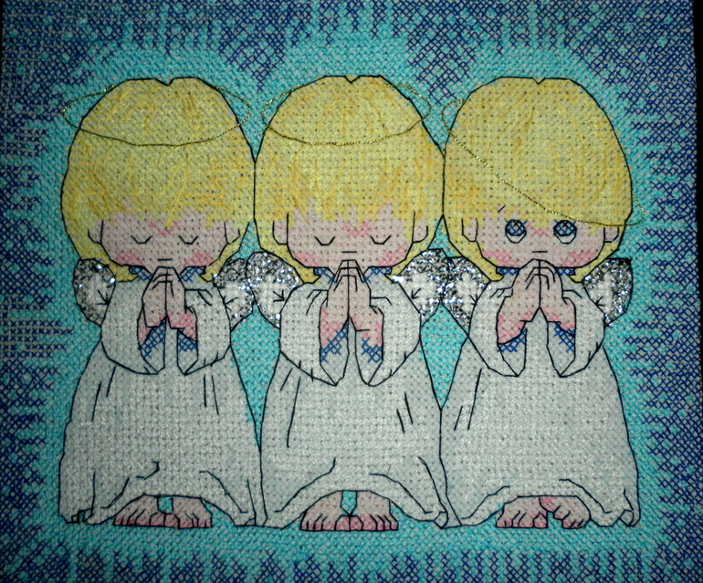 Я своего идеального где то пол года вышивала,тоже хотела не как у всех,сделала платьишко разноцветные у всех,теперь в нашей комнате,надеюсь примета и у нас сработает