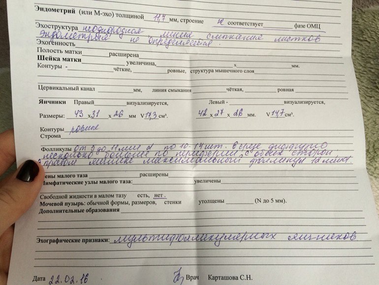 а вот ходила на 16-17 дц и вот узи , с 12дц мажу дивигель ,и так странно,что фолик был в ЛЯ,а теперь в ПЯ, мне О и не ждать что ли?? я вообще не пойму , цикл у меня длинный , сейчас первый цикл дивигель + утрожестан , так что не знаю, расстроиться или ждать О?и Нормальный ли эндик !?