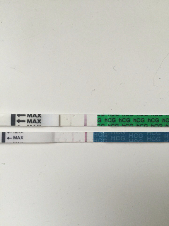 ПОтом делала в субботу тест,он был тоже какой-то невменяемый)Вообще не поверила)Фрау чистый,а этот со слабой,и вот сегодня сделала ЭВик и вижу полоску,но больно бледная для 15ДПО-то(