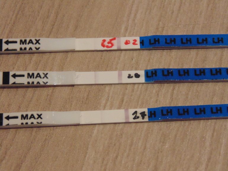 Мы тоже планируем, и в этом цикле тоже купила тесты "Я родился". У меня О случилась видимо в ночь с 26 на 27, т.к. 26 февраля днём я делала тест, был бледноват, а уже часов в 11 вечера решила сделать и была полоска самая яркая из всех, что делала до. При этом появилась сначала тестовая полоска, а потом контрольная, чего раньше не было. Я читала, что в О так и бывает. Потом уже 27 днём снова показывал бледную. Теперь жду результата) На фото как раз видно. Я там подписывала число, когда делала тест. Полоски конечно выцвели уже, но тогда было достаточно ярко.
