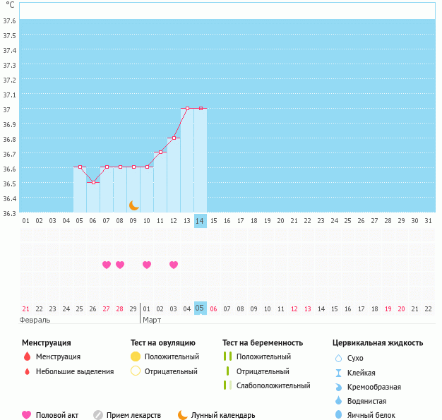 У меня не рисовалась овуляция, когда я после одного цикла, в этом же графике стала дальше отмечать ( второй цикл). То есть надо в каждый цикл начинать новый график.