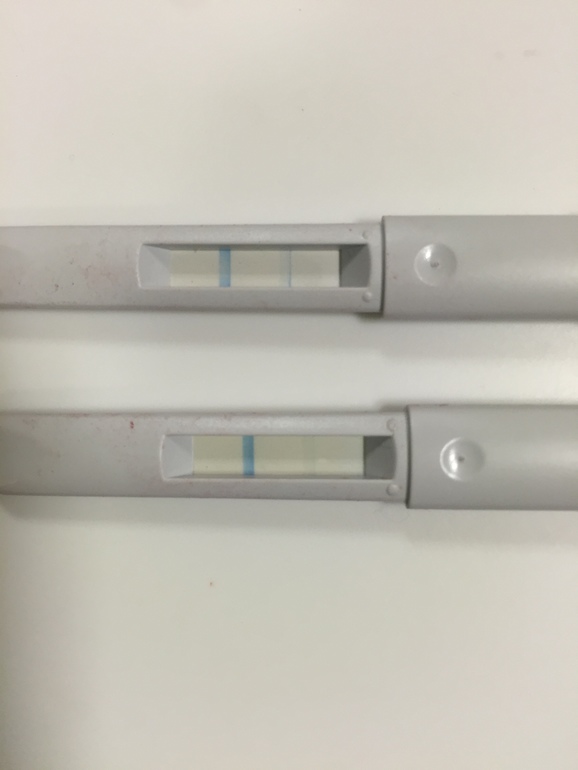 Ну вот из двух тестов я бы поверила верхнему. Нижний у меня был за день до М. Поэтому я и не верю клеарблю. Если есть возможность купите эвик. Правда - из всех тестов они мне ещё не врали.