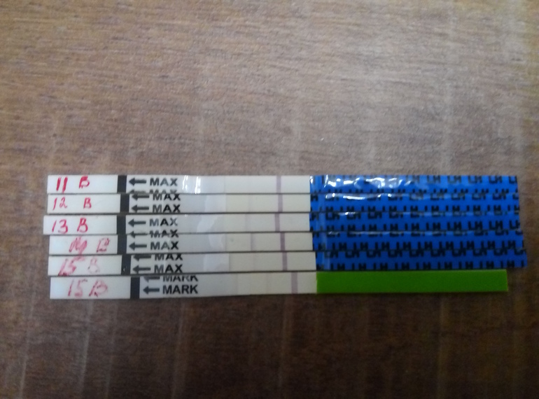 Овуляция( тесты на овуляцию)Девушки, добрый вечер. Подскажите, была О на 14 ДЦ или нет? Синие - Клевер (я родился), зеленый - Овуплан. Сомневаюсь именно из-за тестов Клевер, первый раз ими пользовалась. Овуплан всегда показывали ярче. Не знаю, начинать ли поддержку дюфастоном.