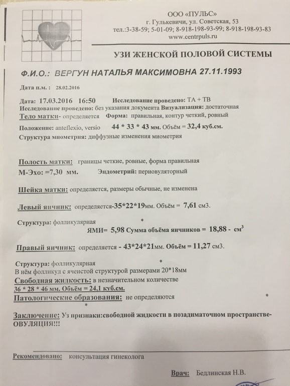 Да не за что) я просто сегодня тоже с узи и жидкость и жт, врач четко сказала, о была либо вчера днем, либо ночью, что жт и жидкость лишь подтверждение что як уже вышла. Но я была в чт и сегодня утром, поэтому точно знаю, что в чт о быть не могло по показателям. Т.е была вчера, что сегодня подтвердили.