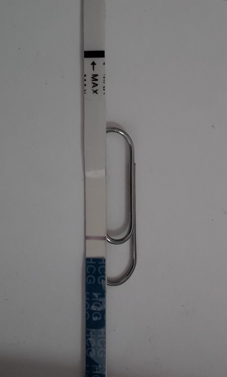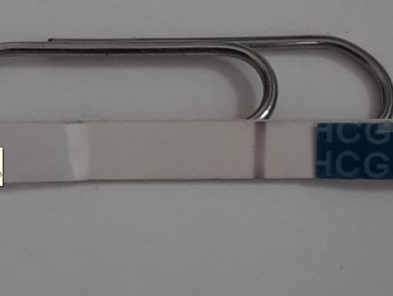 Мне удалось хоть как-то поймать то, что я вижу на своем тесте. Хотя может быть на фото по-прежнему не видно, просто я-то знаю, где она там есть)))))