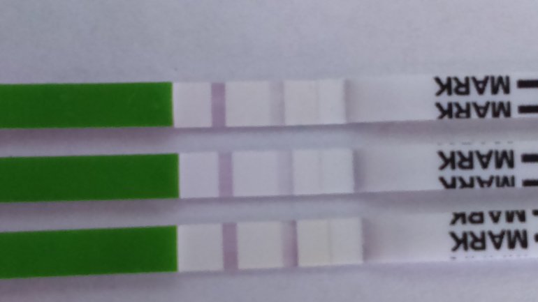 Вот мой положительный с прошлого цикла. Когда я его делала, тестовая была реально ярче контрольной, а потом высох и они сравнялись. Сейчас уже может подвыцвел немного.